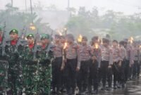 Papua – Sambut HUT RI Ke-80 Polres Yahukimo Gelar Upacara Taptu dan Pawai Obor di Depan Mapolres Yahukimo Jalan poros Jendral Soedirman Kilo Meter…