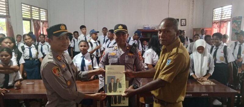Papua – Kapolsek Agats Polres Asmat AKP Andi Suhidin, S.H., M.Si., didampingi Wakapolsek Agats Iptu Ambo Takka, S.H., melakukan sosialisasi Penerimaan SMA Kemala Taruna Bhayangkara yang dilaksanakan di Ruang Laboratorium IPA SMP Negeri 2 Agats, Selasa (14/01/2025).