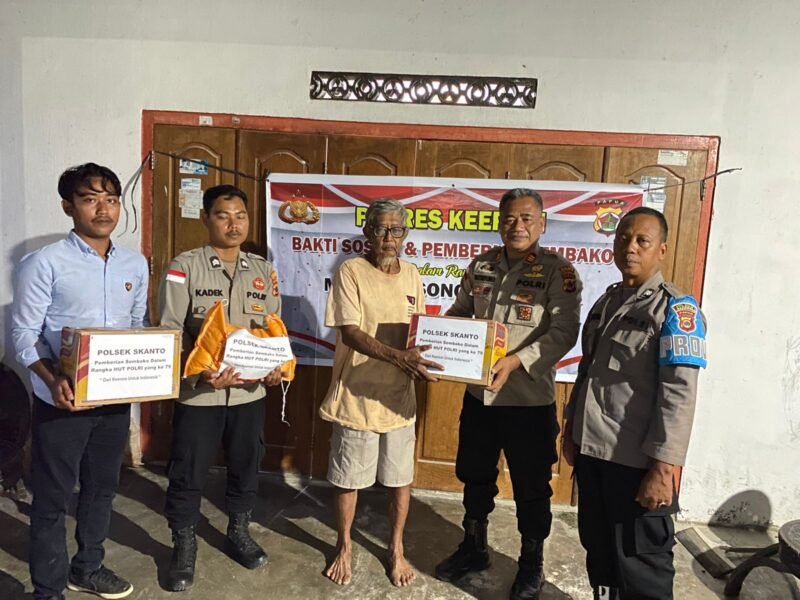 Papua – Dalam rangka menyambut Hari Bhayangkara ke-79, Polsek Skanto, Polres Keerom melaksanakan kegiatan Bakti Sosial berupa pemberian paket sembako kepada para Purnawirawan Polri yang berdomisili di wilayah hukum Distrik Skanto, Kabupaten Keerom.