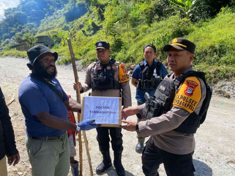 Papua – Polsek Tembagapura bersama personel TNI 611/AW Pos Banti melaksanakan pengamanan dan monitoring kegiatan adat bakar batu yang berlangsung di Batu Besar, Kampung Kimbeli, Distrik Tembagapura, Kabupaten Mimika, Sabtu (03/05).