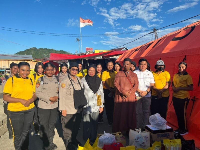 Papua – Kepedulian terhadap warga yang terdampak kebakaran di kawasan Dok V Bawah, Kota Jayapura, kembali ditunjukkan Polwan Polda Papua bersama Tim Oikumene Polda Papua. Rombongan melaksanakan kegiatan bakti sosial di Posko Kebakaran Jalan Mandala, dengan menyalurkan bantuan berupa sembako dan pakaian layak pakai kepada masyarakat yang terdampak, Jumat (26/09).