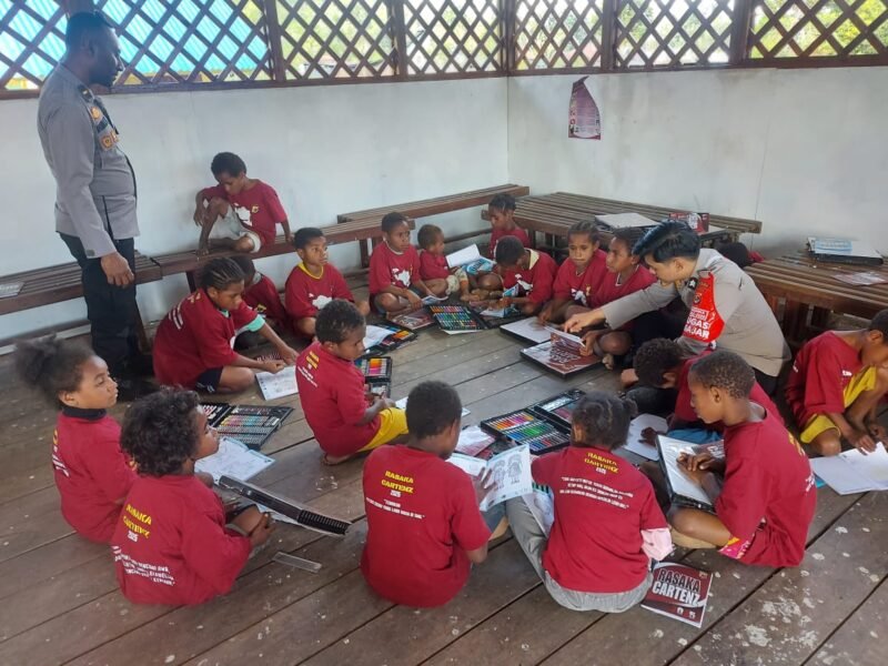 Papua – Program Si-IPAR (Polisi Pi Ajar), bagian dari Operasi Rasaka Cartenz 2025, Hadir Mengajar Menulis dan Membaca Kepada Anak-anak Generasi Emas Papua, kegiatan dilaksanakan di Balai Kampung Kabiding Distrik Oksibil, Kabupaten Pegunungan Bintang, Oksibil. Sabtu (02/08) Sore.