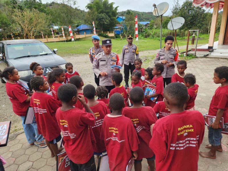 Papua – Program Si-IPAR (Polisi Pi Ajar), bagian dari Operasi Rasaka Cartenz 2025, Hadir Mengajar Serta Menjadi Sahabat Bagi Anak-anak Papua, kegiatan dilaksanakan di Halaman Mako Polres Pegunungan Bintang Kampung Distrik Oksibil, Kabupaten Pegunungan Bintang, Oksibil. Senin (18/08) Sore.