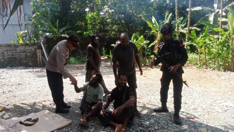 Papua – Kasat Binmas Polres Mimika, AKP Dorotheus Jemalut bersama personel Brimob Yon B Mimika melaksanakan patroli dialogis sekaligus sambangi warga binaan bertemlat di kompleks Selebes Kampung Hangaitji Distrik Mimika Baru, Kabupaten Mimika, Senin (24/2/2025).