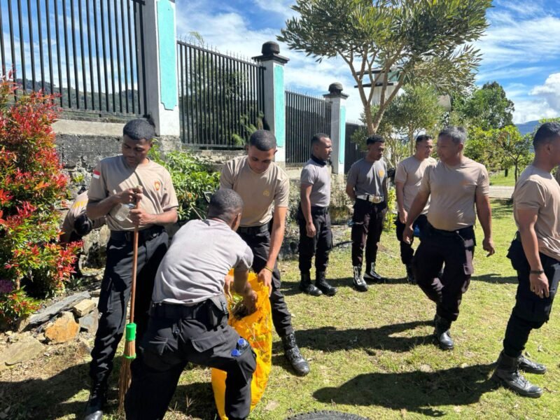 Papua – Dalam rangka menyongsong Hari Bhayangkara Ke – 79, Polres Tolikara gelar bakti sosial (Bersih-bersih) di 3 lokasi tempat ibadah diantaranya, Masjid Baitul Muttaqin, Gereja Ebenheizer dan Gereja Yerusalem Kota Karubaga, pada Selasa, (17/06/2025).