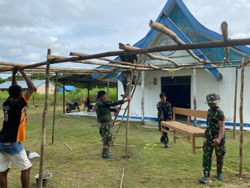 Papua – Dalam rangka menyambut perayaan Natal yang penuh damai dan penuh makna, Pos Kout Satgas Yonif 512/QY turut berperan aktif dalam mempersiapkan kegiatan Natal di Gereja Kemah Injil Indonesia, yang terletak di Distrik Senggi. Sabtu, (21/12/2024).