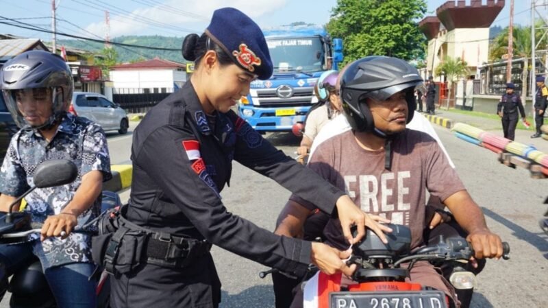 Papua – Dalam rangka menyambut HUT Ke 80 Kemerdekaan Republik Indonesia, Satuan Brimob Polda Papua melaksanakan kegiatan pembagian bendera Merah Putih kepada masyarakat pengendara sepeda motor, Senin (04/08).