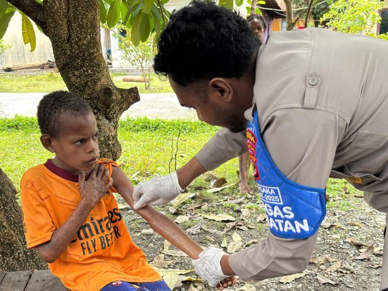 Papua – Satgas Keladi Sagu Polres Yahukimo kembali melakukan pelayanan kesehatan gratis bagi warga di jalan Sosial Kabupaten Yahukimo, Jumat (23/5/25).