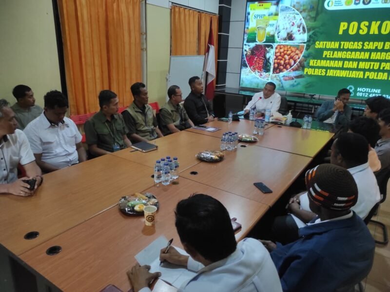 Papua – Satuan Tugas Sapu Bersih (Satgas Saber) Pengawasan Harga Pangan Polda Papua melaksanakan supervisi rapat koordinasi dan inspeksi mendadak (sidak) harga bahan pangan di Kabupaten Jayawijaya, Provinsi Papua Pegunungan, Rabu (11/2/2026). Kegiatan ini dilakukan sebagai langkah antisipasi lonjakan harga pangan menjelang Hari Raya Imlek, Bulan Suci Ramadan, dan Hari Raya Idulfitri.