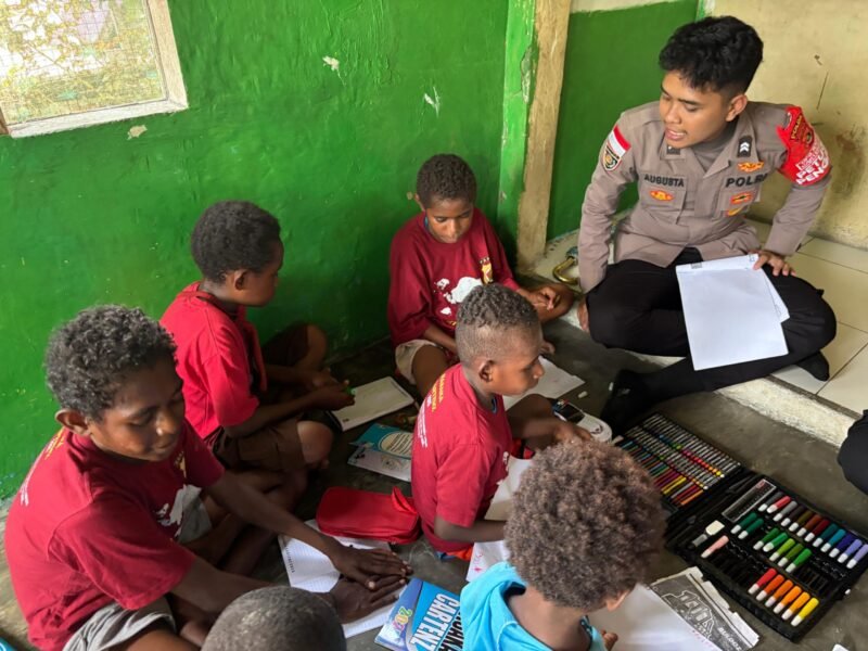 Papua – Suasana hangat dan penuh semangat menyelimuti Kompleks Jalan Sosial, Distrik Dekai Kabupaten Yahukimo. Anak-anak berkumpul dengan wajah ceria, siap menerima pembelajaran dari para personel Subsatgas Si-Ipar Polres Yahukimo dalam kegiatan Operasi Rasaka Cartenz 2025. Jumat (27/6/25).
