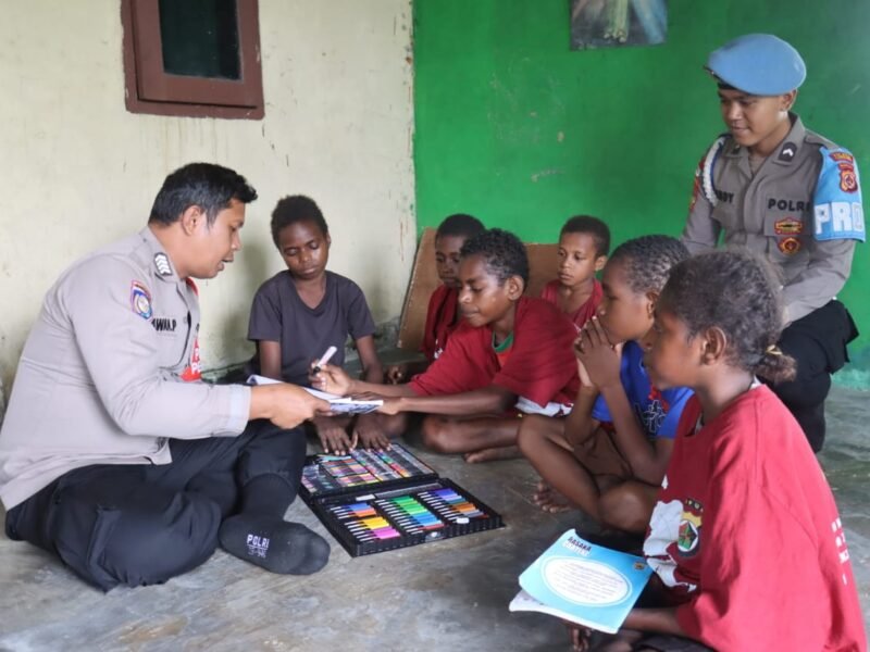 Papua – Dekai-Melalui Program Si Ipar yang rutin dilakukan Rasaka Cartenz-2025, personel secara terjadwal memberikan pelajaran kepada anak-anak di Jalan Sosial Distrik Dekai Kabupaten Yahukimo, Jumat (12/9/25).