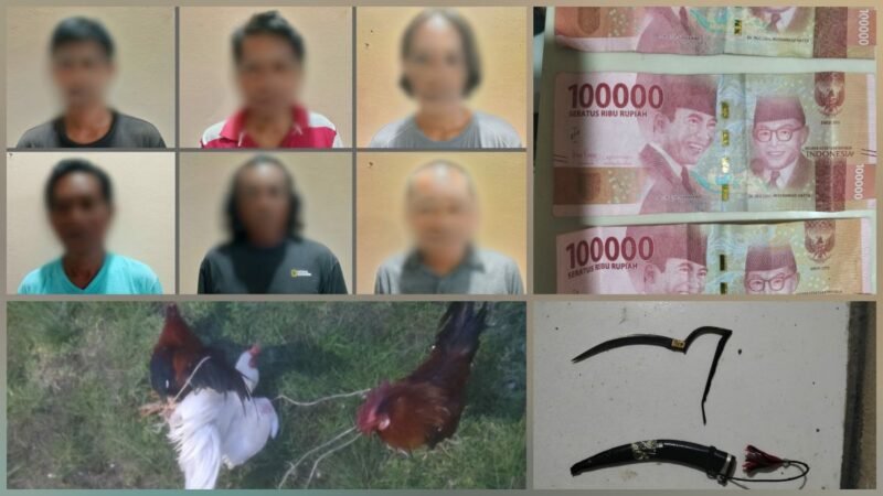 Penangkapan ke enam pelaku judi sabung ayam, sempat terjadi tontonan warga setempat walaupun dari salah satu tersangka ada yang melawan berargunen/mementang petugas, namun petugas berhasil melanjutkan penangkapan terhadap ke enam orang pelaku judi sabung ayam.