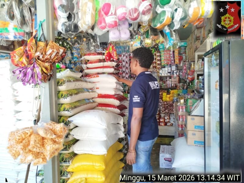 Papua — Satuan Reserse Kriminal (Satreskrim) Polres Yalimo melakukan pengecekan harga bahan kebutuhan pokok di Pasar Sentral Elelim, Kabupaten Yalimo, Papua, Minggu (15/3/2026). Kegiatan tersebut dilakukan untuk memantau perkembangan harga pangan sekaligus memastikan ketersediaan bahan pokok bagi masyarakat menjelang Hari Raya Idulfitri.