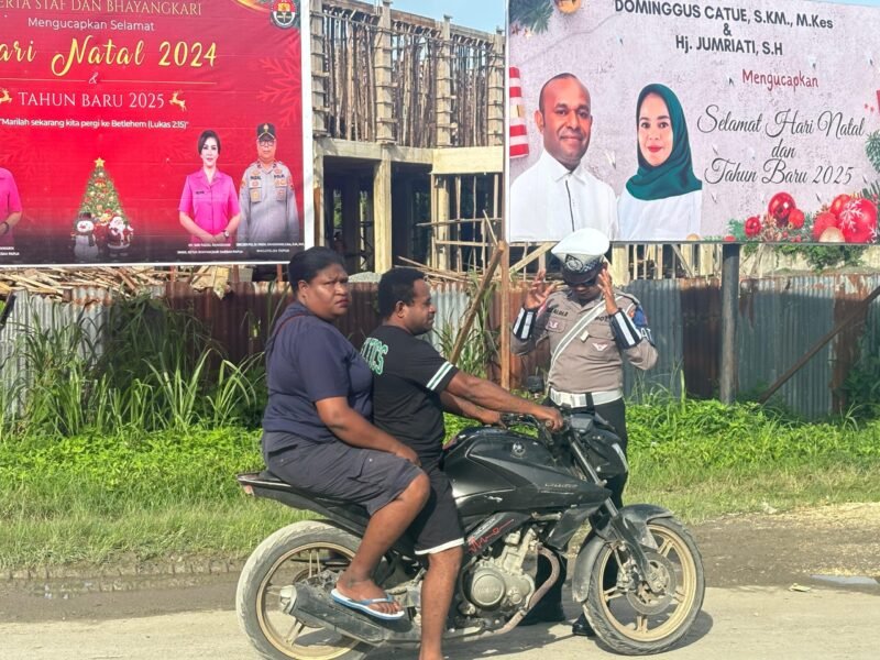 Sarmi – Guna kesadaran masyarakat tertib berlalu lintas, Satuan Lalu Lintas (Satlantas) Polres Sarmi menggelar kegiatan strong point dengan melakukan pengamanan dan pengaturan lalu lintas di titik rawan kecelakaan lalu lintas, Selasa ( 07/01/2025 )