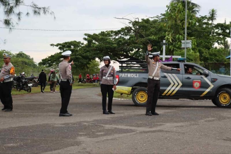 Sarmi – Satuan Lalulintas Polres Sarmi (Polda Papua) melaksanakan Pengawalan dan pengamanan kegiatan jalan santai dalam rangka Gebyar Natal 2024 yang digelar oleh pemerintah daerah kabupaten Sarmi yang dilaksanakan di Bandara Mararena Sarmi, Rabu (18/12/2024).pagi tadi