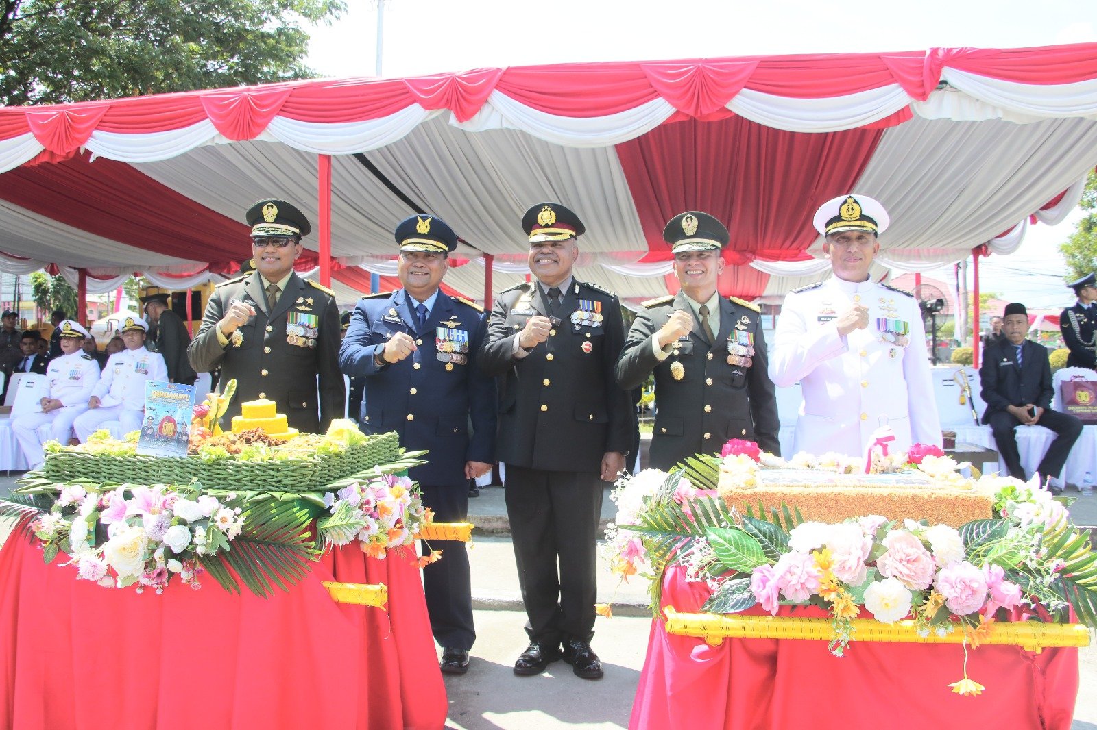 Upacara HUT TNI ke-80 tahun ini mengusung tema “TNI Prima – TNI Rakyat – Indonesia Maju”, yang merefleksikan semangat profesionalisme, responsivitas, dan kemanunggalan TNI bersama rakyat dalam menjaga keutuhan dan kedaulatan Negara Kesatuan Republik Indonesia.