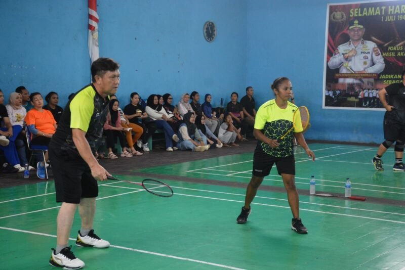 Papua – Pertandingan bulutangkis dalam rangka memeriahkan Hari Bhayangkara ke-79 kembali digelar pada hari kedua oleh Direktorat Reserse Narkoba (Ditresnarkoba) Polda Papua, bertempat di Gedung Olahraga Wiguna. Kegiatan ini melibatkan berbagai tim dari internal kepolisian hingga peserta umum, yang menunjukkan semangat kompetitif dan kebersamaan,. Rabu (18/06).