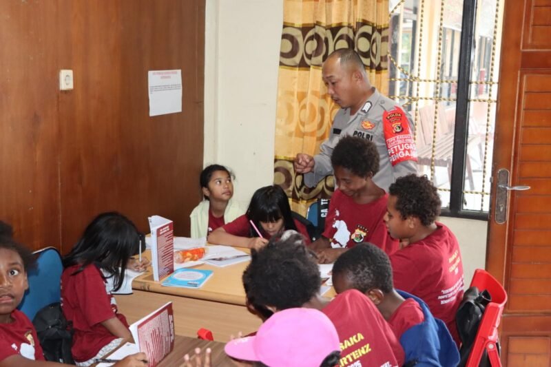 Kegiatan dipimpin langsung oleh Kasubsatgas Si-IPAR, IPDA Maikel Matius Imburi, serta diawasi oleh Kasubsatgas Banops, IPDA Charles A. Raubaba. Suasana belajar tampak hangat dan penuh antusiasme, di mana anak-anak mengikuti sesi pembelajaran dengan gembira bersama para personel Polri.
