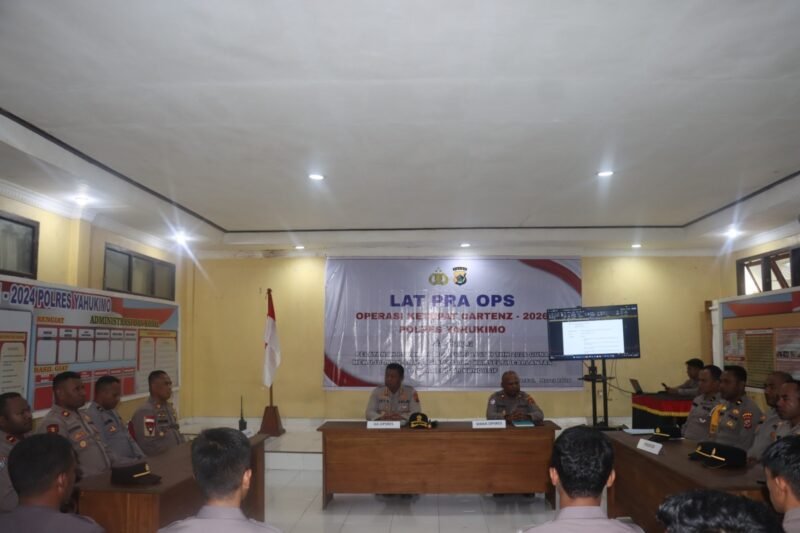 Papua – Dalam rangka mempersiapkan pengamanan perayaan Idulfitri 1447 H, Polres Yahukimo melaksanakan kegiatan Latihan Pra Operasi (Lat Pra Ops) Ketupat Cartenz 2026 yang berlangsung di Aula Brasa Polres Yahukimo.