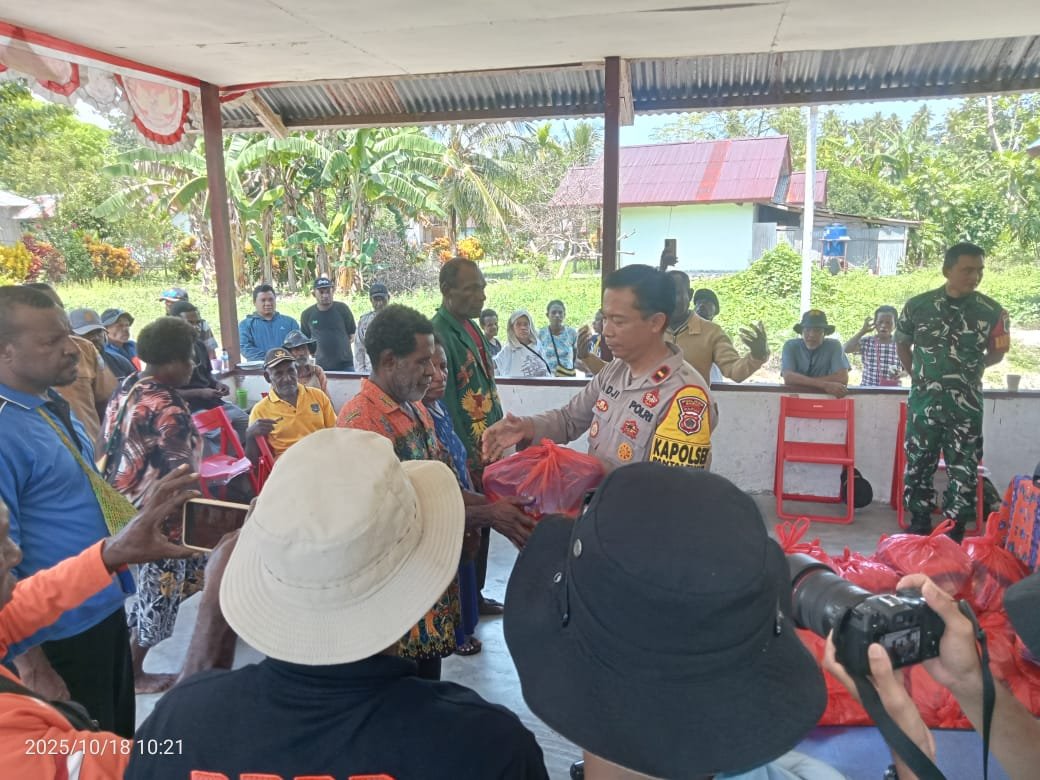 Papua – Kepedulian terhadap warga terdampak gempa bumi yang mengguncang Kabupaten Sarmi pada 16 Oktober 2025 terus mengalir. Hari ini, Kapolsek Pantai Timur Ipda T. Prasetyo Adji, S.Sos, bersama jajaran, mendampingi Pemerintah Daerah Kabupaten Sarmi dan Badan Penanggulangan Bencana Daerah (BPBD) dalam kegiatan penyaluran bantuan sembako dan perlengkapan kebutuhan dasar bagi masyarakat terdampak di Kampung Artibe dan Kampung Dabe I, Distrik Pantai Timur Barat, Sabtu (18/10).