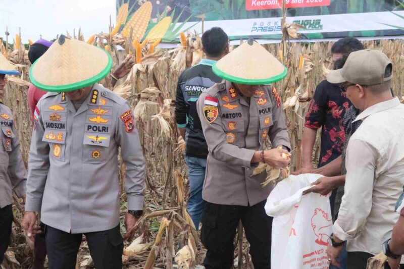 Papua – Kepolisian Resor Keerom menunjukkan komitmennya dalam mendukung program ketahanan pangan nasional dengan menggelar Panen Perdana Tanaman Jagung Tumpang Sari di lahan PTPN 1 Region 1 Kebun Arso seluas dua hektar yang terletak di Kampung Sanggaria, Distrik Arso Barat, Kabupaten Keerom, Jumat (09/05/2025).