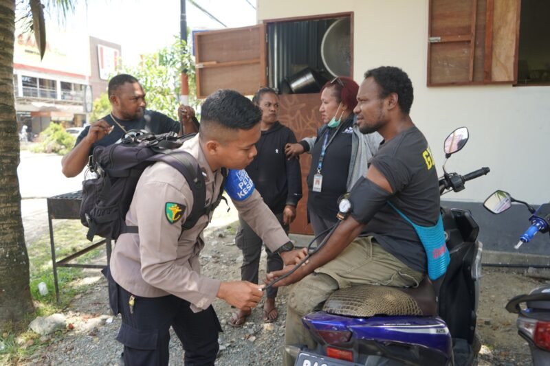 Papua – Subsatgas Keladi Sagu Ops Rasaka Cartenz-2025 yang dipimpin oleh AKP Rozikin, S.H. melaksanakan kegiatan pemeriksaan kesehatan gratis kepada masyarakat di sekitar pertigaan lampu merah Bandara Sentani, Rabu (17/09/2025).