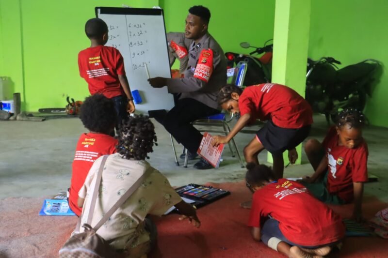 Papua – Subsatgas Si-Ipar Polres Yalimo kembali turun tangan, menggelar kegiatan belajar berhitung cepat dengan fokus pada materi penjumlahan. 25/06/2025.