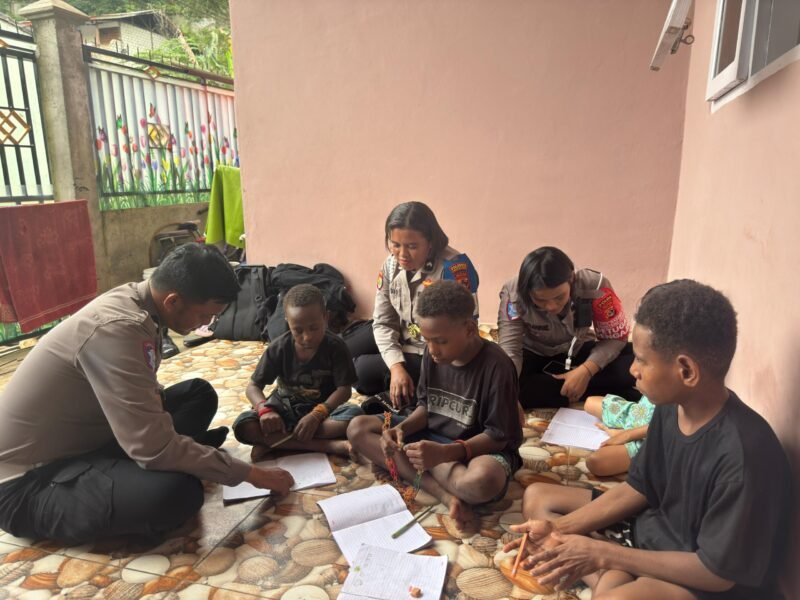 Papua – Berlokasi di Rumah Belajar Perumahan Graha Youtefa Distrik Heram, Subsatgas Si Ipar Polresta Jayapura Kota hadir merangkul dan memberikan materi pembelajaran kepada anak yang putus sekolah dan tidak bisa calistung, Senin (28/04) Pagi.