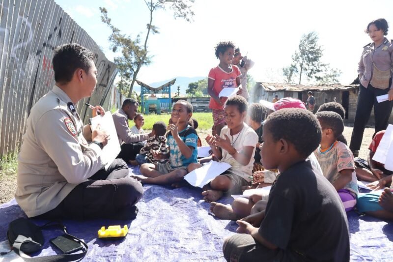 Papua – Dalam rangka Operasi Rasaka Cartenz 2025, Subsatgas Si-IPAR (Polisi Peduli Anak dan Remaja) Polres Jayawijaya menggelar kegiatan belajar-mengajar untuk anak-anak pengungsi di Rumah Pengungsian Masyarakat Yali – Yahukimo yang terletak di Jln. Bhayangkara, Distrik Wamena Kota, Kabupaten Jayawijaya, Papua Pegunungan. Minggu, (11/04) Pagi.