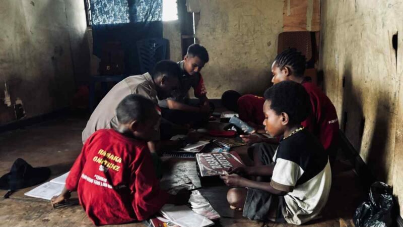 Papua – Subsatgas SI-IPAR Rasaka Cartenz Polres Nduga kembali hadir memberikan pembelajaran kepada anak-abak di Distrik Kenyam, Kab.Nduga,