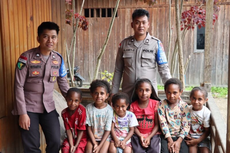 Papua – Subsatgas Keladi Sagu Operasi Rasaka Cartenz (ORC) 2025 Polres Pegunungan Bintang melaksanakan pelayanan kesehatan berupa pemberian vitamin kepada anak-anak di Jalan Pasar Baru, Distrik Oksibil, Kabupaten Pegunungan Bintang, Senin (17/11) sore.
