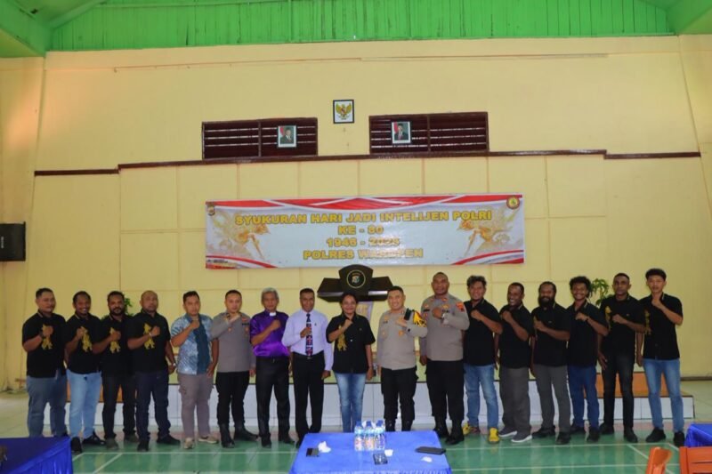 Papua – Dalam rangka memperingati Hari Ulang Tahun (HUT) ke-80 Intelijen Polri Tahun 2026, Polres Waropen menggelar kegiatan syukuran yang berlangsung khidmat di Aula Kerja Bersama Polres Waropen, Sabtu (3/1/2026). Kegiatan ini menjadi momentum refleksi atas perjalanan panjang pengabdian Intelijen Polri dalam menjaga keamanan dan ketertiban masyarakat (kamtibmas).