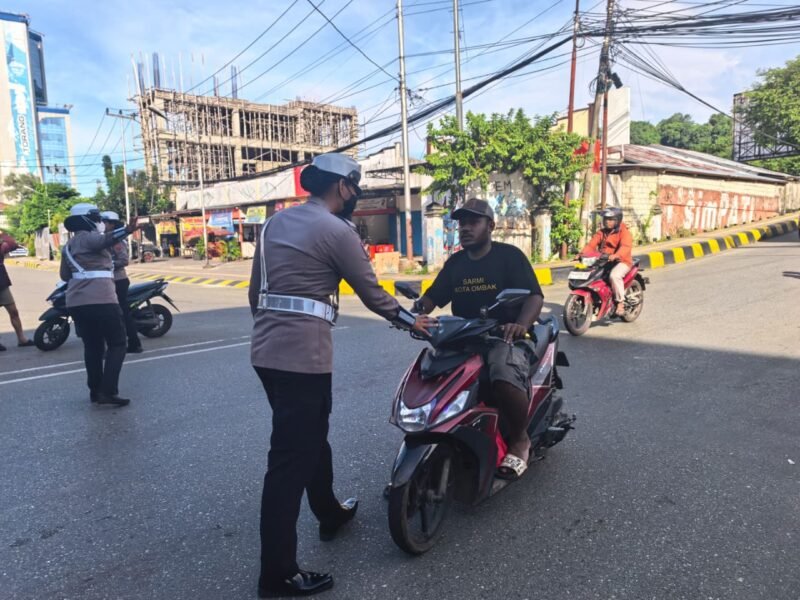 Papua – Satuan Lalu Lintas Polresta Jayapura Kota melaksanakan kegiatan Hunting atau penertiban pelanggaran kasat mata berupa pengendara yang tidak memakai helm penggunaan knalpot racing/brong di wilayah hukum Polresta Jayapura Kota, Selasa (21/04/2026) Sore.
