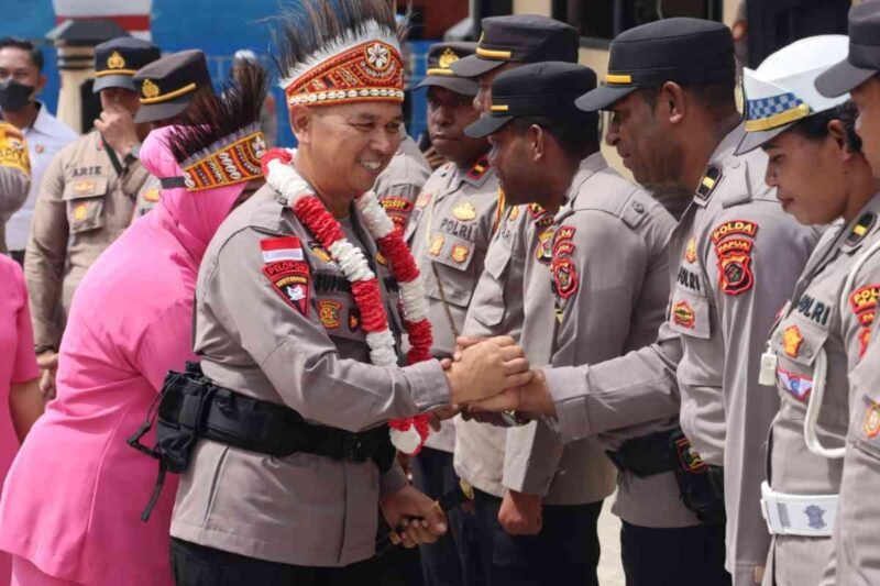 Papua – Polres Mappi melaksanakan kegiatan penyambutan Kapolres Mappi Kompol Suparmin, S.IP., M.H dan Ketua Bhayangkari Cabang Mappi Ny. Dwi Suparmin yang ditandai dengan prosesi adat yaitu pengalungan bunga dan pemasangan mahkota bulu kasuari oleh ketua Lembaga Masyarakat Adat (LMA) Kabupaten Mappi Falentinus Tanggipaimu yang digelar di Mapolres Mappi, Senin (28/04/2025).