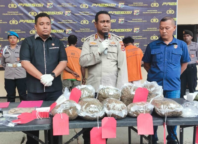Papua – Dari Ketiga Pelaku yang dibekuk Tim Gabungan dari Opsnal Satuan Reserse Narkoba dan Reserse Kriminal Polresta Jayapura Kota yakni KK (38), AT (19) dan GT (38), salah satunya merupakan Warga Negara Asing (WNA) asal Papua Nugini.