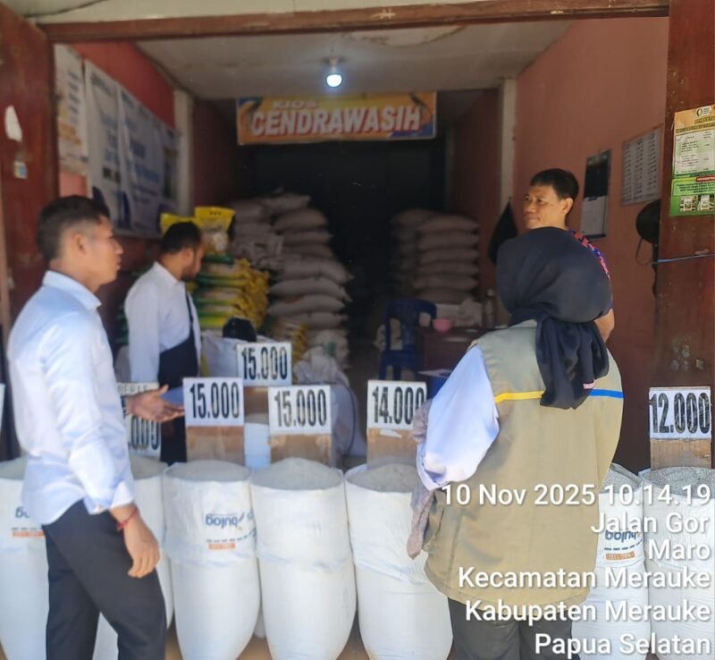 Papua – Tim Satgas melakukan pengecekan harga beras premium, medium, dan SPHP di wilayah Kabupaten Merauke, Papua Selatan, pada Senin, 10 November 2025. Pengecekan ini dilakukan untuk memastikan ketersediaan dan harga beras di pasar.