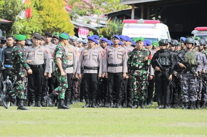Papua – TNI dan Polri menggelar Apel Gelar Pasukan dalam rangka persiapan pengamanan VVIP Kunjungan Kerja Wakil Presiden Republik Indonesia di wilayah Provinsi Papua. Kegiatan berlangsung di Lapangan Trisila, Entrop, Distrik Jayapura Selatan, Kota Jayapura, Selasa (16/09).