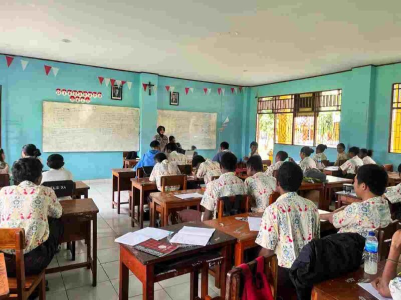 Papua – Subsatgas Si Ipar Operasi Rasaka Cartenz 2025 Polresta Jayapura Kota kunjungi SMA YPPK Taruna Dharma Kota Jayapura guna memberikan serta menjelaskan akan betapa pentingnya materi Wawasan Kebangsaan, Kamis (27/03) Pagi.