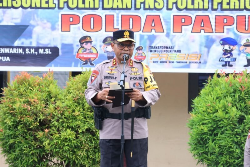 Papua – Kepolisian Daerah Papua menggelar upacara kenaikan pangkat bagi 794 personel dan PNS Polri periode 1 Juli 2025, yang dipimpin langsung oleh Kapolda Papua, Irjen Pol. Patrige R. Renwarin, S.H., M.Si., pada Senin (30/06), bertempat di Lapangan Apel Mapolda Papua, Jalan Dr. Sam Ratulangi No. 8, Bayangkara, Distrik Jayapura Utara, Kota Jayapura.