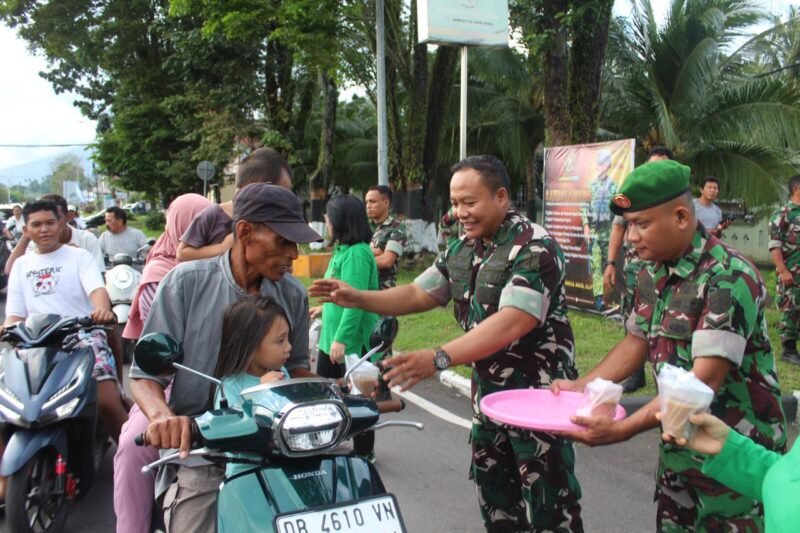 Bitung – Dalam rangka menyemarakkan bulan suci Ramadhan, anggota dan Persit Kodim 1310/Bitung menggelar kegiatan pembagian Takjil kepada masyarakat di wilayah Kota Bitung, Jumat (27/02/2026).